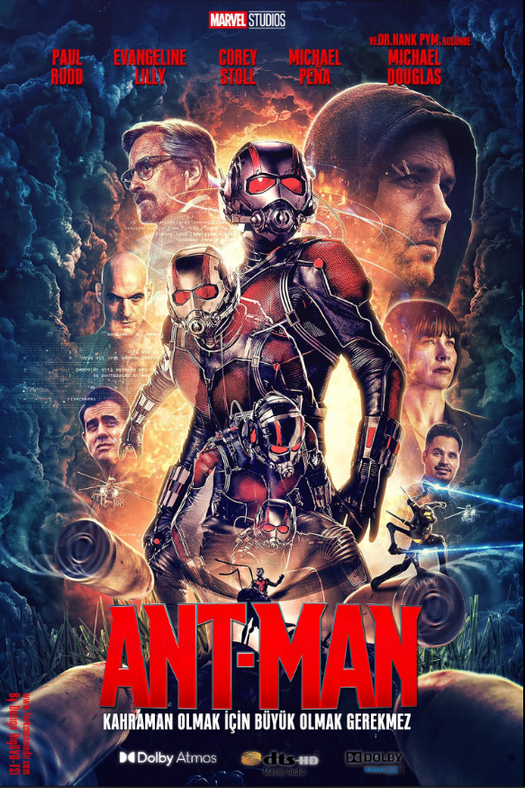Ant-Man, Marvel Studios yapımı ve Marvel Cinematic Universe’ün daha hafif tonlu, soygun temalı süper kahraman filmidir. Hapisten yeni çıkan Scott Lang, kızı Cassie’ye iyi bir baba olabilmek için hayatını düzene sokmaya çalışır. Ancak sabıkası nedeniyle iş bulmakta zorlanır. Bu sırada eski S.H.I.E.L.D. bilim insanı Hank Pym ile yolları kesişir. Pym, geliştirdiği ve kullanıcısına atomik ölçekte küçülme yeteneği kazandıran Ant-Man kostümünü Scott’a emanet eder. Hedef, Pym’in eski öğrencisi Darren Cross’un geliştirdiği ve askeri amaçlarla kullanılabilecek tehlikeli “Yellowjacket” teknolojisini durdurmaktır. Scott, fiziksel boyutunu küçültüp kütlesini koruyarak üstün güç ve çeviklik kazanırken, karıncalarla iletişim kurma yeteneğini de kullanır. Film; baba-kız ilişkisi, ikinci şans ve sorumluluk temalarını işler. Süper kahraman anlatısını klasik bir “heist” (soygun) yapısıyla birleştirerek, aksiyon ile mizah arasında dengeli bir ton kurar.